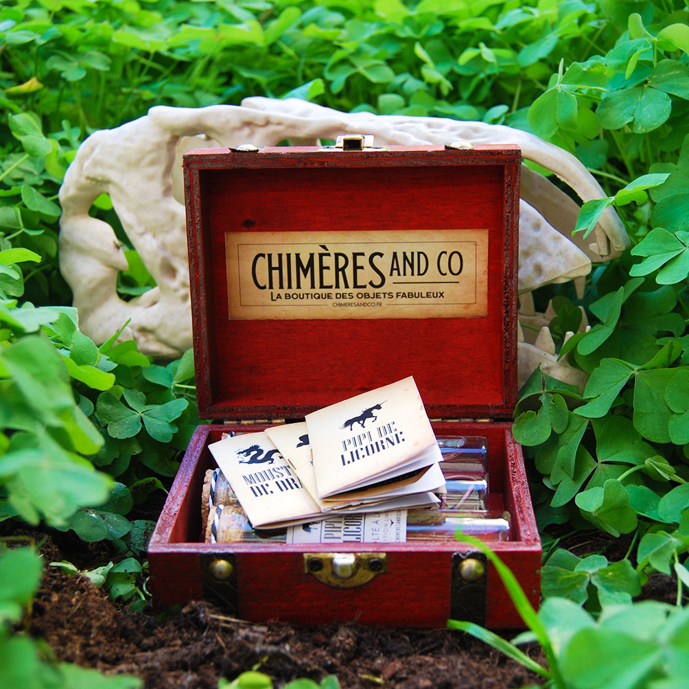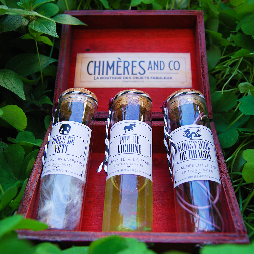 Plumes d'ange, Poils de Bigfoot, Larmes de crocodile, Moustache de dragon, Pipi de licorne, Fragments d'ovni, Écailles de sirène, Bouts de balai de sorcière, Sang de vampire, Mini kit vaudou, Poils de yéti